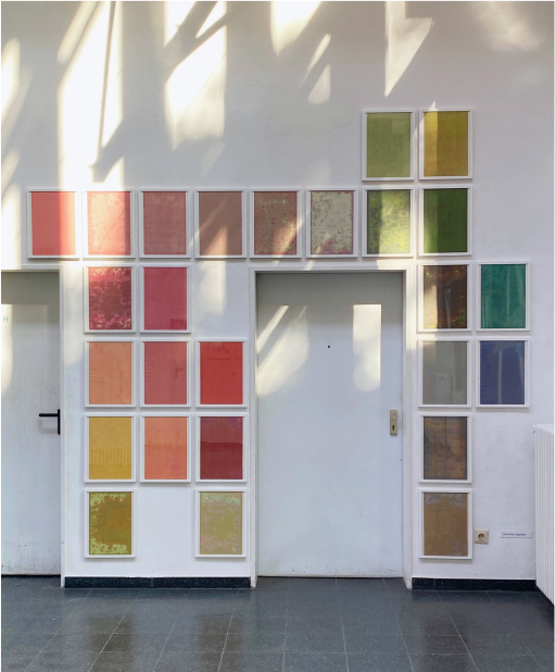 Dorothee Joachim: Installationsansichten mit Arbeiten 2001 – 2013 (Pigmente und Acryl auf MDF) und 2016 – 2018 (Aquarellfarben auf Karton bzw. Foamboard)