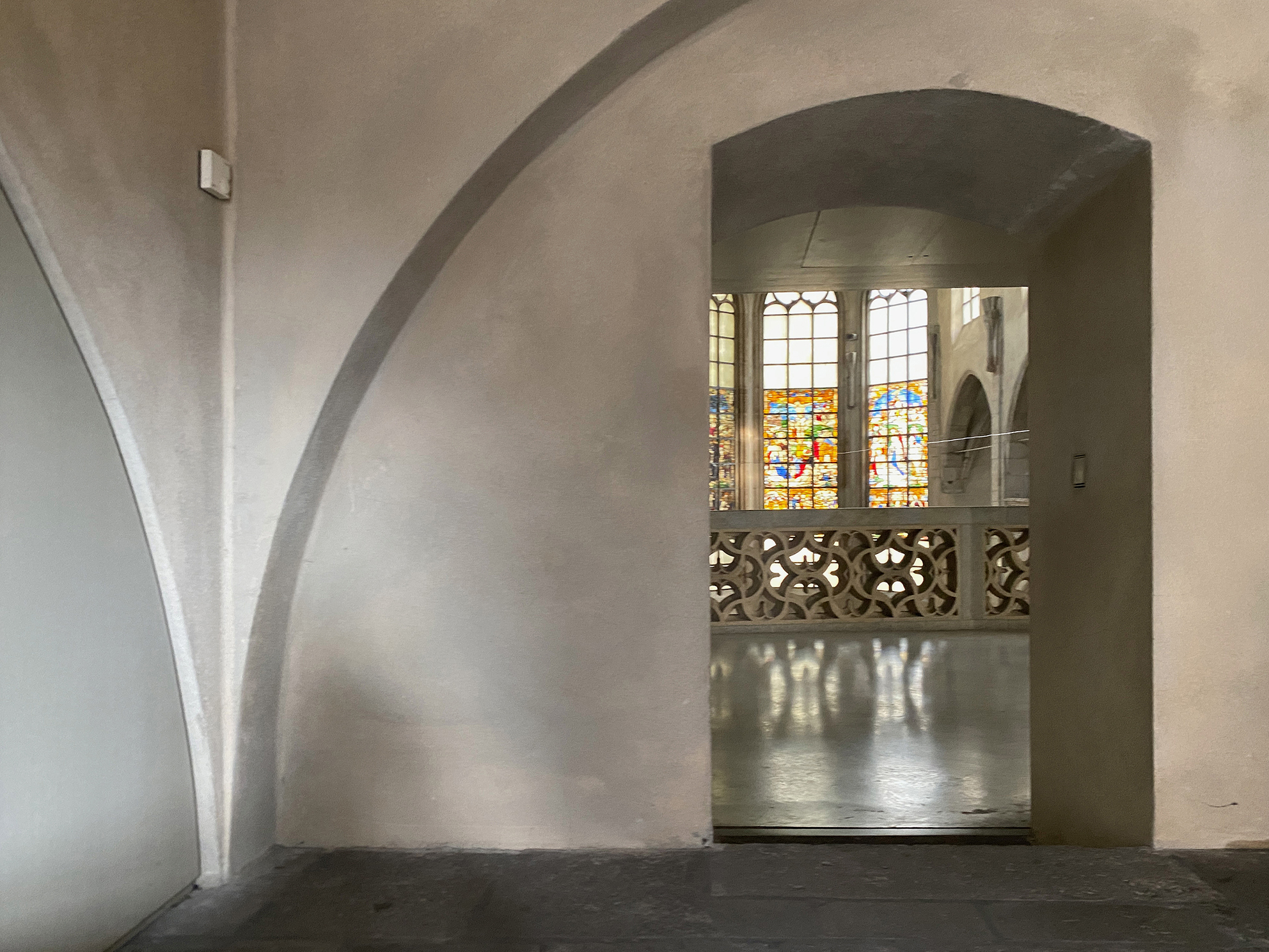 Installation an der Nordwand der Empore von Sankt Peter; links der Eingang zum Turmraum