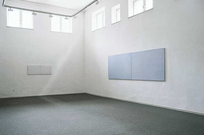 Der zentrale Bereich der Ausstellung ist ganz der Grundfarbe Blau gewidmet. Dadurch wird eine Situation geschaffen, die durch den Vergleich die Wahrnehmung für die feinen Unterschiede in den Farbstufen sensibilisiert. Diese Sensibilisierung erfordert vor allem Zeit. Jeder Betrachter, ganz gleich, ob er die Bilder zum ersten oder zum wiederholten Mal sieht – wie im übrigen auch die Künstlerin selbst –, muss bei jeder Begegnung aufs Neue Zeit investieren, um diese Bilder wirklich zu sehen. Erst im Laufe der Zeit setzt sich ein Wahrnehmungsprozess in Gang, der im Grunde genommen nie zum Ende kommt. Fangen die Bilder erst einmal an, sich zu zeigen, wird schnell klar, dass diese Veränderung zwar in einem gewissen Rahmen bleibt, dem Wesen nach aber unendliche Varianten bietet.