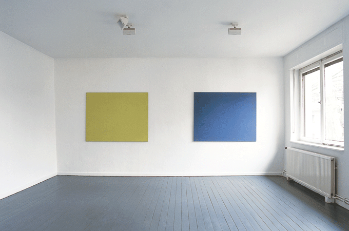 galerie januar e.V., Bochum, 2002/03; Arbeiten aus den Jahren 2001-2002, Pigmente und Acryl auf Nessel bzw. Holz (Fotos: Alistair Overbruck)