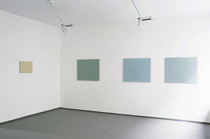Galerie Schütte, Essen, 2001; Arbeiten aus den Jahren 1999-2001, Pigmente und Acryl auf Nessel bzw. Holz (Fotos: Alistair Overbruck)