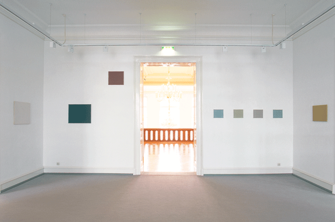 "7 x Farbe pur ", Städtische Galerie Villa Zanders, Bergisch Gladbach, 2003; Arbeiten aus den Jahren 1997-2003, Pigmente und Acryl auf Nessel bzw. Holz (Fotos: Alistair Overbruck 1-3, Michael Wittassek 4-7)